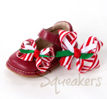 For the little girls, Squeakers also offers matching shoe and hair bows! You can transform any shoe to fit any personality or occasion! Just look at this adorable holiday set!